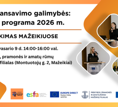 Pristatymas Mažeikiuose. „ES finansavimo galimybės: CERV programa 2026 m.“