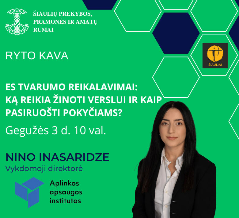 Kviečiame susipažinti su tvarumo aktualijomis. Tema: „ES tvarumo reikalavimai: ką reikia žinoti verslui ir kaip pasiruošti pokyčiams?“