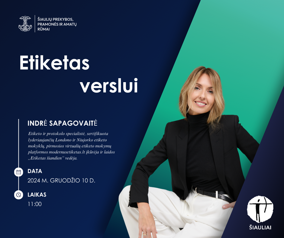 Kviečiame Jus į etiketo seminarą, kuriame sužinosite, kaip kurti profesionalų įvaizdį, stiprinti savo autoritetą ir efektyviai bendrauti verslo aplinkoje!