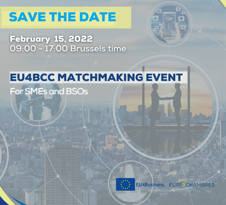 2022 m. vasario 15 d. nuo 9.00 iki 17.00 | Briuselio laiku kviečiame dalyvauti EUROCHAMBRES organizuojamame virtualiame EU4BCC kontaktų renginyje.