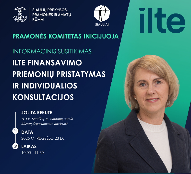 kviečiame į informacinį susitikimą su Nacionaliniu plėtros banku ILTE, kurio metu Smulkių ir vidutinių verslo klientų departamento direktorė Jolita Rėkutė pristatys aktualias finansavimo priemones verslo, žemės ūkio atstovams, atsakys į kylančius klausimus.