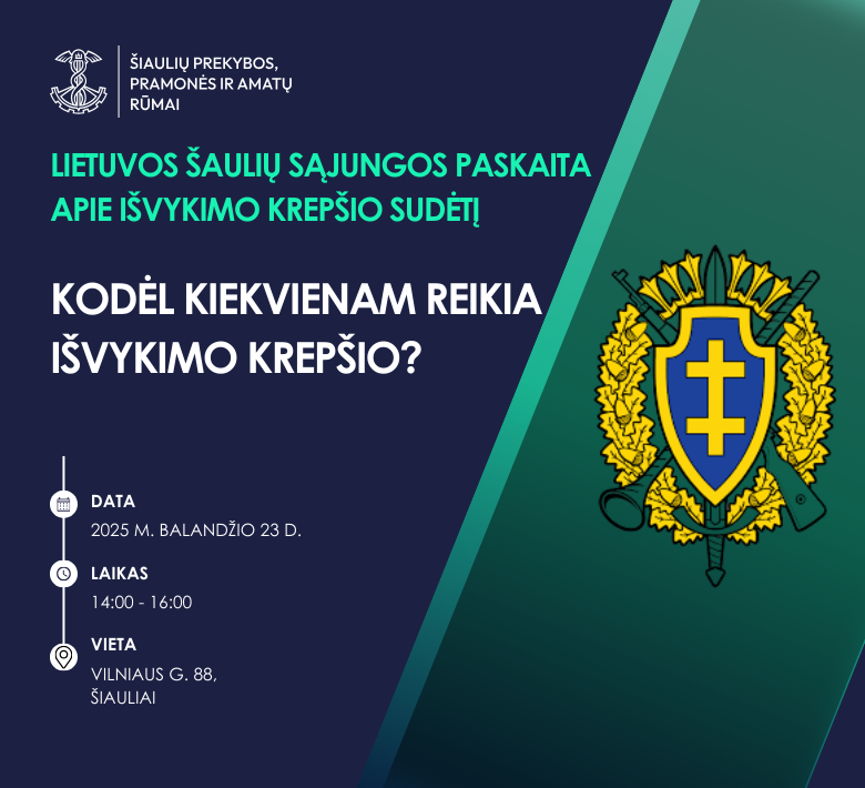 Renginio vieta: Šiaulių prekybos, pramonės ir amatų rūmai (Vilniaus g. 88, Šiauliai)