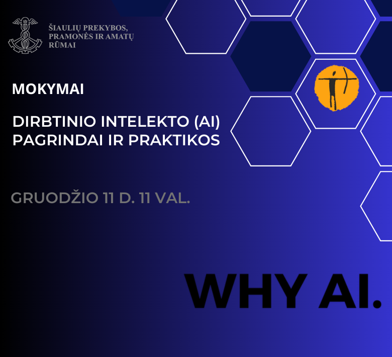 Kviečiame susipažinti su naujuoju kolega – dirbtiniu intelektu, kuris Jums padės tiek, kiek Jūs jį įdarbinsite! Mokymai dirbtinio intelekto (DI) srities įdomybėms ir praktikoms atskleisti!