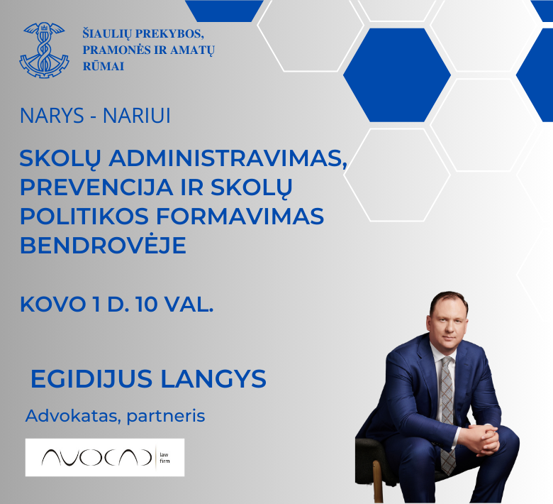 Skolų valdymas ir administravimas – Skolos, skolos, skolos – kad ir kuris metų ketvirtis, laikotarpis ar sezonas būtų skolų yra visada. Vykstanti aktyvi dinamika versluose dažnai lemia ir „neigiamo“ portfelio kaupimąsi, su kurio reikia kažką daryti siekiant neprarasti pinigų srautų ir apyvartinių lėšų, o kartais ir nesusigadinti kredito istorijos. Viskas priklauso nuo to, kas tuo metu esate – kreditorius ar debitorius. Kaip valdyti skolas, atrasti balansą tarp formaliosios teisės ir verslo santykių išsaugojimo, neprisirašyti vekselių ten, kuri jų nereikia kviečiame į diskusiją su Advokatų profesinės bendrijos AVOCAD advokatu Egidijumi Langiu.