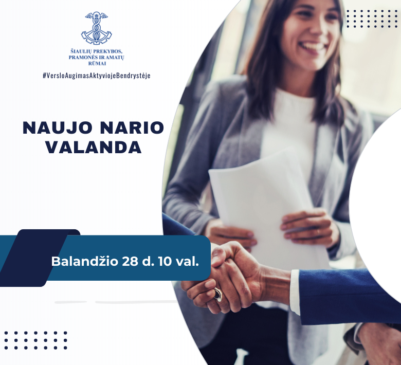 Kviečiame dalyvauti įmonių vadovus ir pagrindinius asmenis ryšiams su Šiaulių prekybos, pramonės ir amatų rūmais.