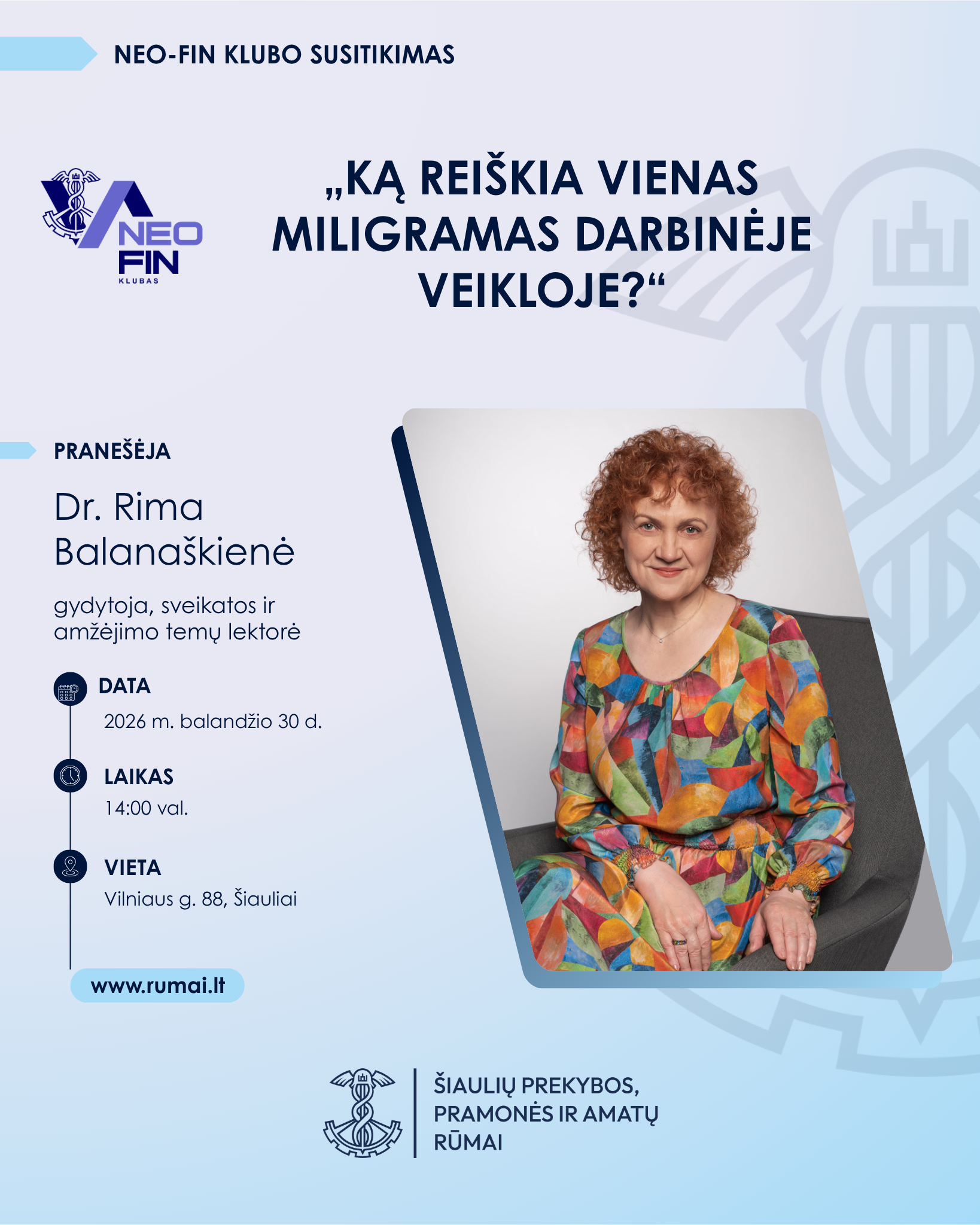 NEO-FIN klubo susitikimas. Seminaras „Ką reiškia vienas miligramas darbinėje veikloje?“