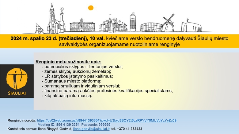 Spalio 23 d. 10 val. Šiaulių miesto savivaldybė organizuoja nuotolinį renginį verslo atstovams.