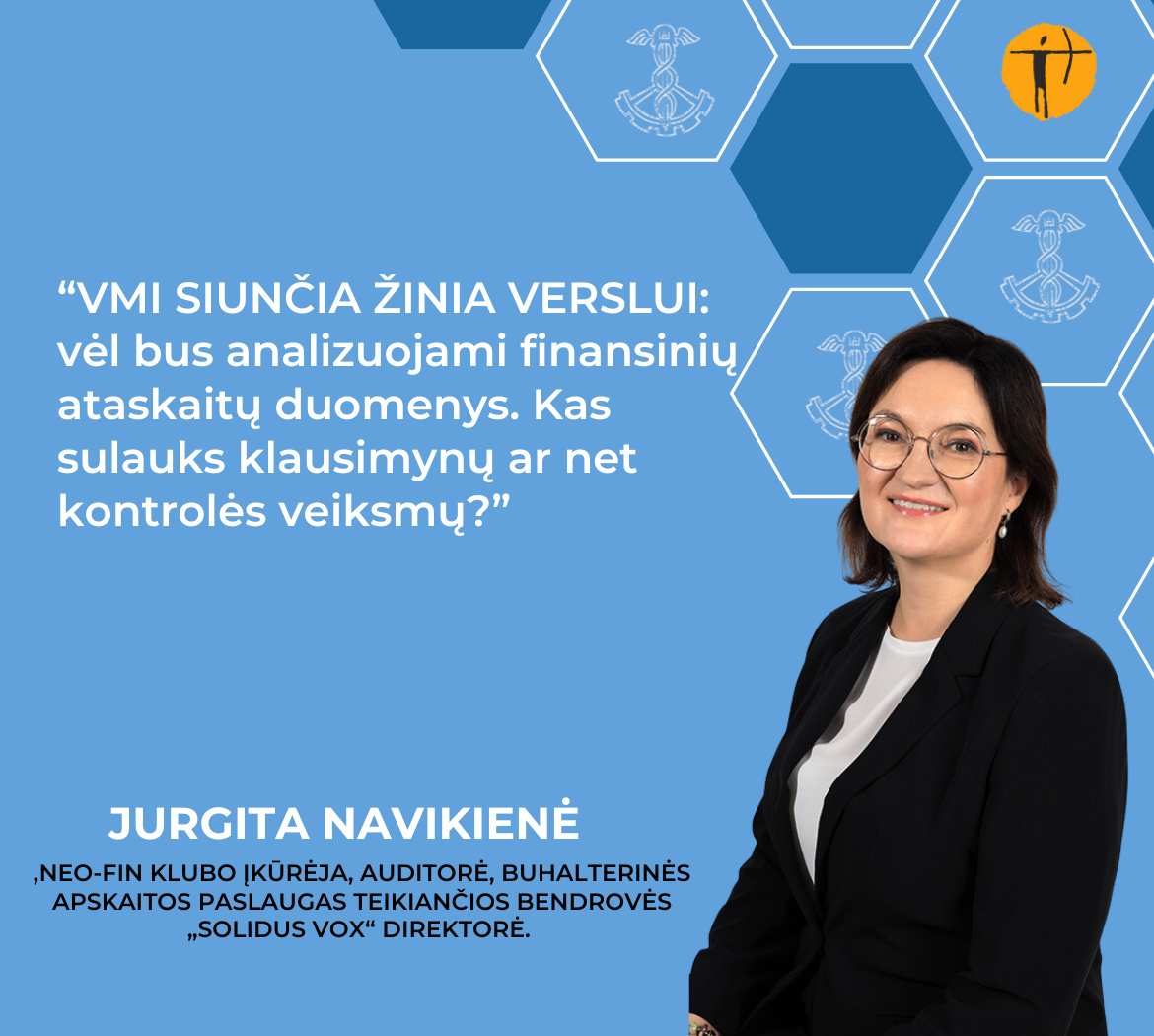 NEO-FIN klubas kviečia į nuotolinį susitikimą-seminarą tema: “VMI siunčia žinią verslui: vėl bus analizuojami finansinių ataskaitų duomenys. Kas sulauks klausimynų ar net kontrolės veiksmų?”