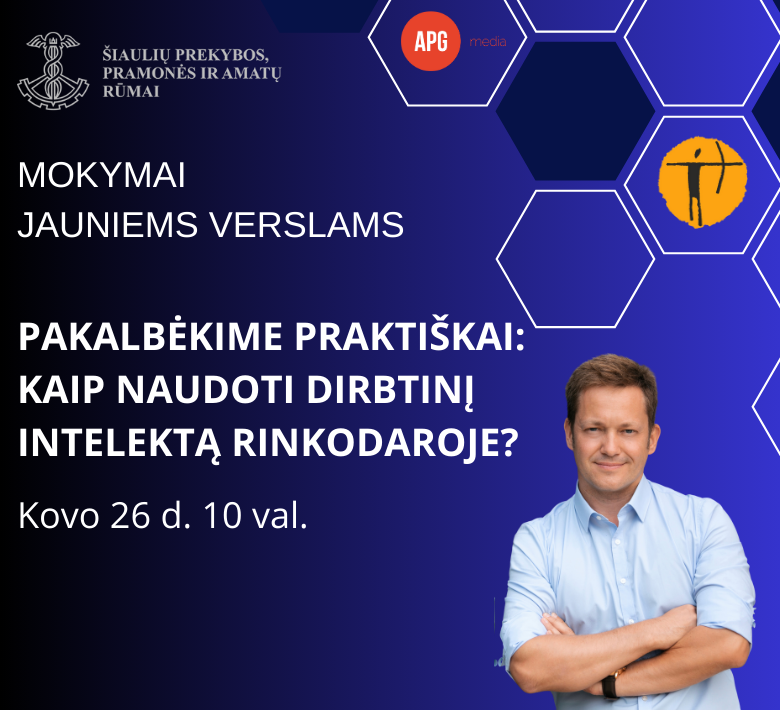 „Naudojant tinkamus DI įrankius ir žinant, kaip su jais dirbti, galima sukurti prekės ženklą nuo nulio ir vos per valandą pradėti internete funkcionuojantį verslą su prekės ženklu, aiškiomis tikslinėmis auditorijomis, interneto svetaine, turiniu reklamoms. Vis dėlto tam reikalingos specifinės žinios, kaip dirbti su DI. Būtent apie tai ir papasakosiu Šiaulių jaunų verslų atstovams“, – sako A. P. Girčys.