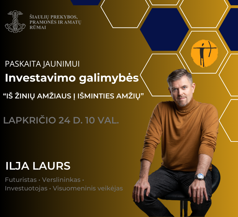 Paskaita organizuojama įgyvendinant Šiaulių miesto savivaldybės verslumo skatinimo programą