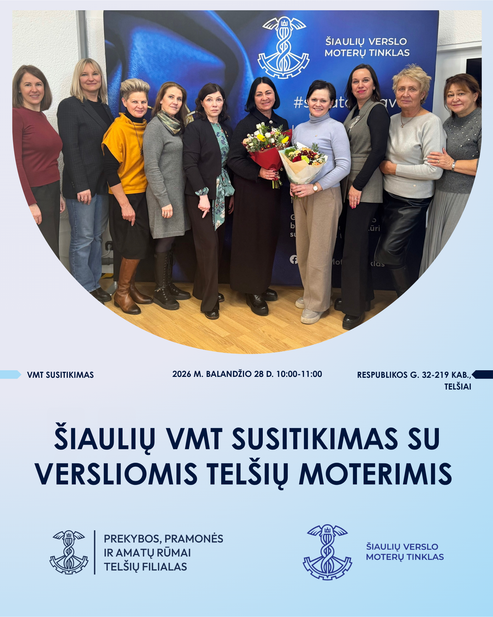 Prie Šiaulių prekybos, pramonės ir amatų rūmų veikiančio Šiaulių verslo moterų tinklo narės atvyksta į Telšius susipažinti su šio krašto verslo atstovėmis ir pasidalinti savo patirtimis.