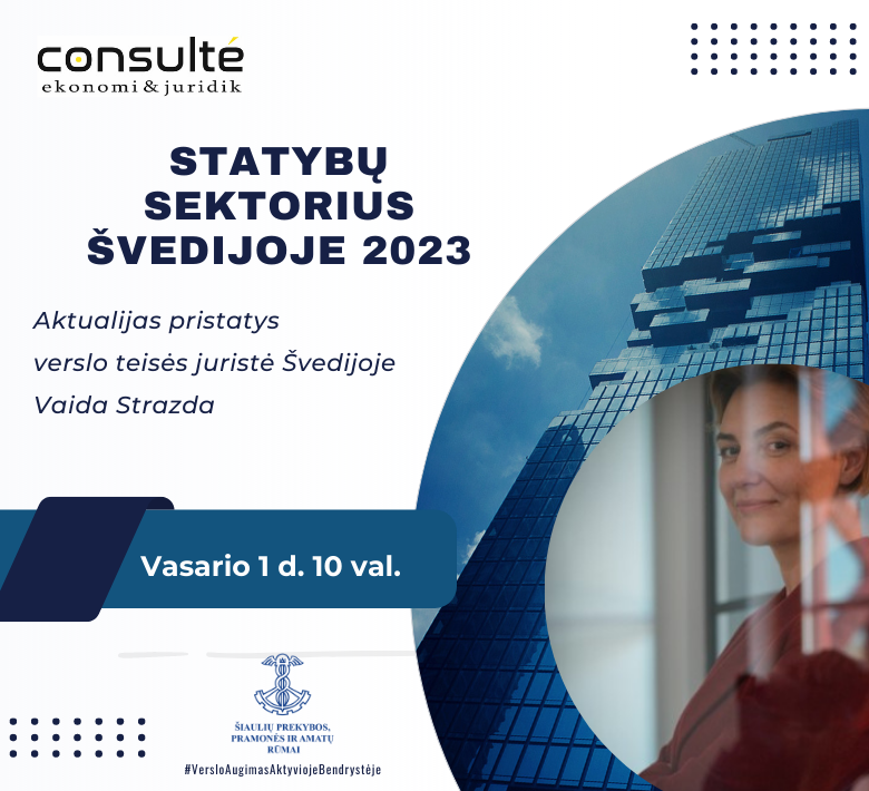 Švedijos statybų sektorius yra priklausomas nuo užsienio rangovų. Prognozuojamas rinkos sunkmetis 2023 m. atveria naujas galimybes Baltijos šalių įmonėms, tačiau tuo pačiu kelia ir didesnius iššūkius. Kokius teisinius pagrindus reikia žinoti pasirašant sutartis su užsakovais Švedijoje? Kokią galią turi vietinės profsąjungos? Kokia yra mokestinė sistema užsienio įmonėms Švedijoje?