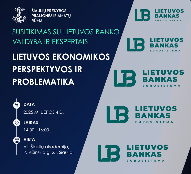 Kviečiame dalyvauti susitikime tema „Lietuvos ekonomikos perspektyvos ir problematika“, kurio metu savo įžvalgomis dalysis Lietuvos banko valdybos pirmininkas Gediminas Šimkus ir kiti Lietuvos banko ekspertai.