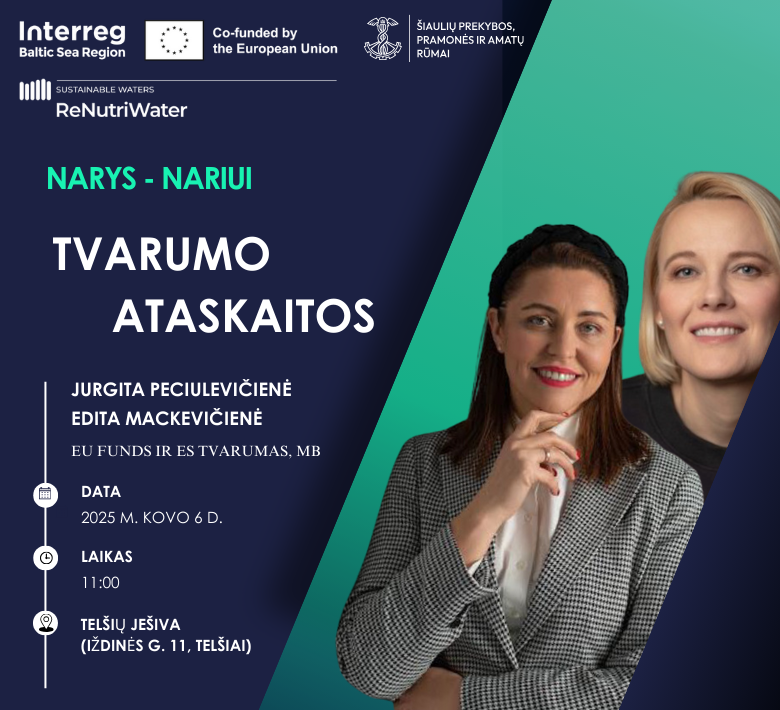 Renginio metu PPAR Telšių filialo direktorė Jolanta Norvaišienė pristatys tvarią plėtrą skatinantį ES projektą „Antrinio vandens panaudojimo perspektyvos. Baltijos jūros regiono Interreg projektas ReNutriWater“.