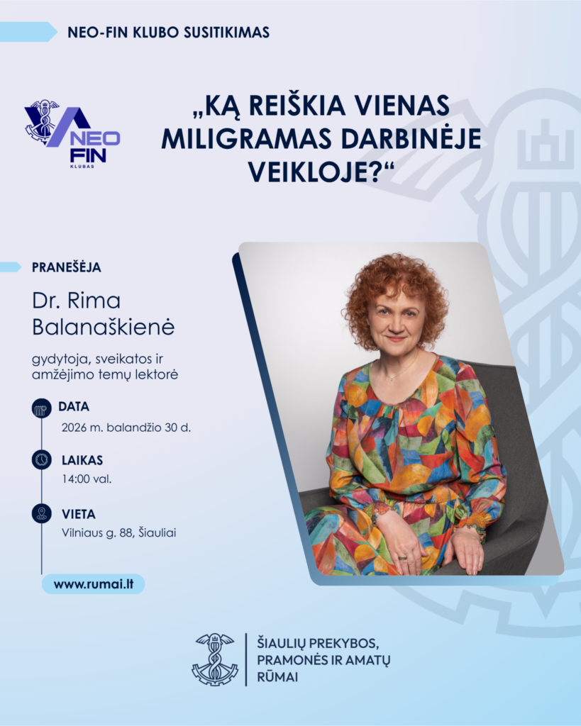 Mokymų vieta: Šiaulių prekybos, pramonės ir amatų rūmai (Vilniaus g. 88, Šiauliai)