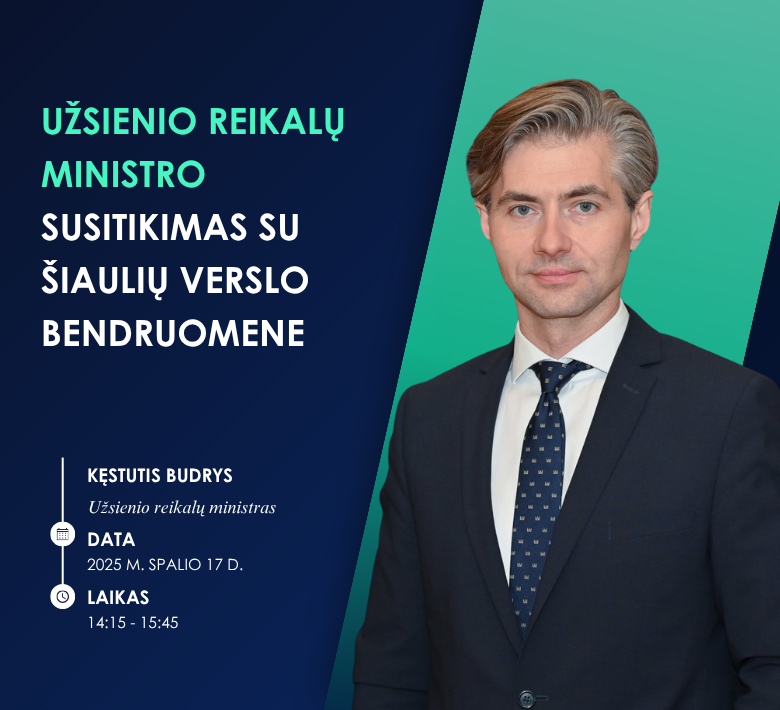 Kviečiame rūmų bendruomenę aktyviai dalyvauti, pristatyti Šiaulių regiono verslo stiprybes bei pasinaudoti galimybe tiesiogiai su ministru aptarti eksporto ir tarptautinės partnerystės perspektyvas.