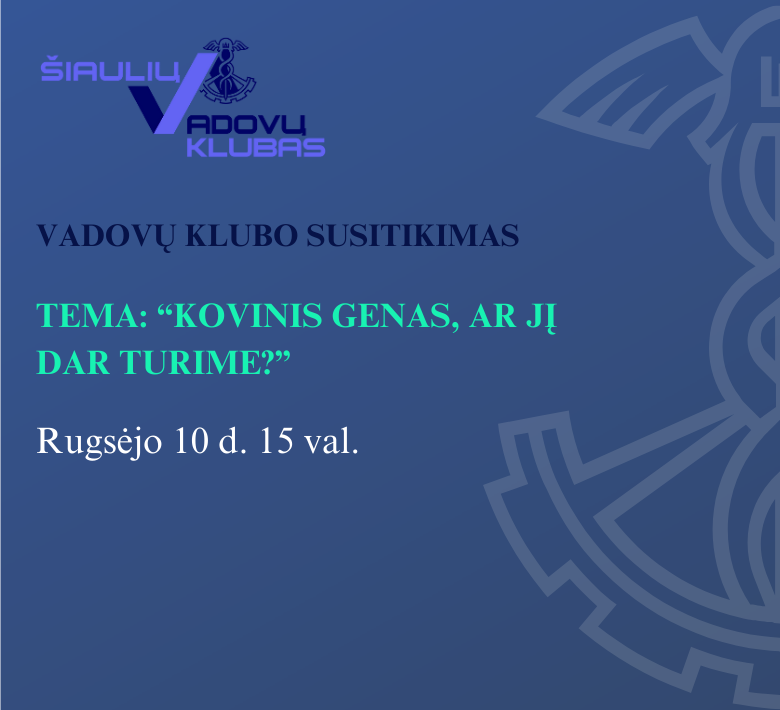 Rugsėjo 10 d. vadovų klubo susitikimas vyks su Lietuvos šaulių sąjungos plk. ltn. Linu Idzeliu.
