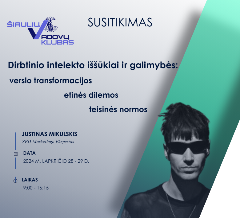 Pranešimo tema: „Dirbtinio intelekto iššūkiai ir galimybės: verslo transformacijos, etinės dilemos ir teisinės normos“