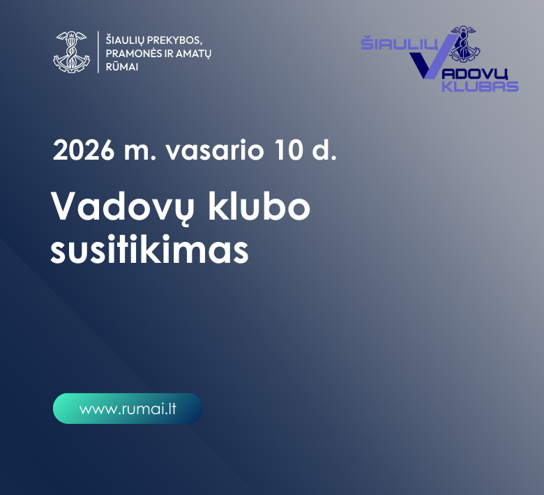 Susitikimas vyks: Šiaulių prekybos, pramonės ir amatų rūmai (Vilniaus g. 88, Šiauliai)