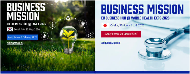 Europos prekybos, pramonės ir amatų rūmų asociacija (Eurochambres) šiuo metu įgyvendina programą EU Business Hub. Tai ES finansuojama iniciatyva, padedanti ES įmonėms, veikiančioms žaliųjų ir mažo anglies dioksido kiekio technologijų, skaitmeninių sprendimų, sveikatos priežiūros ir medicinos įrangos sektoriuose, įžengti į dvi Azijos rinkas – Japoniją ir Korėjos Respubliką. Programos metu 2024–2027 m. organizuojamos verslo misijos į šias šalis.