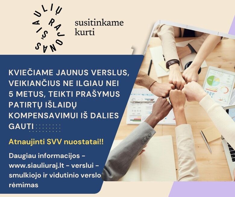 Daugiau informacijos: https://siauliuraj.lt/verslui/smulkiojo-ir-vidutinio-verslo-remimas/2969