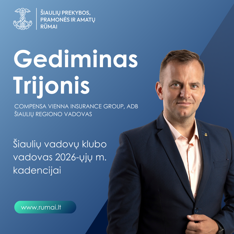 Šiaulių vadovų klubo vadovas 2026-ųjų metų kadencijai – Gediminas Trijonis, Compensa Vienna Insurance Group, ADB Šiaulių regiono vadovas! Linkime dar daugiau prasmingų iniciatyvų, telkiančių vadovų bendruomenę augti, dalintis patirtimi ir kurti ilgalaikę vertę.