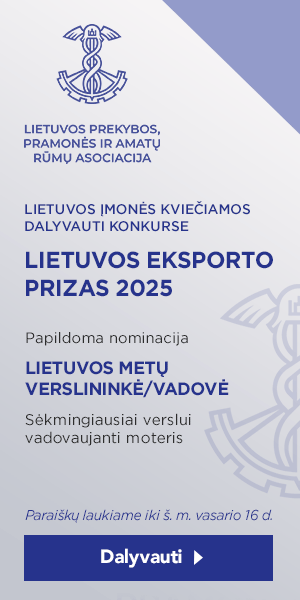 Lietuvos prekybos, pramonės ir amatų rūmų asociacija rengia konkursą „Lietuvos Eksporto prizas 2025“ ir kviečia įmones dalyvauti.