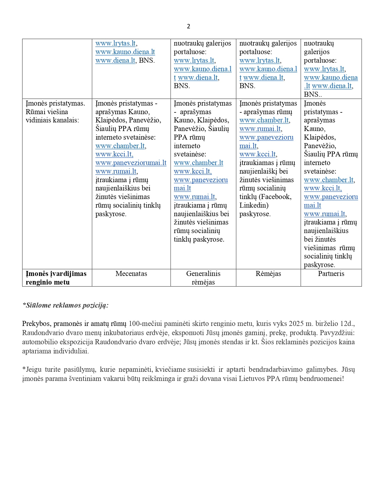 *Jei turite Jums aktualios reklamos pasiūlymą, kuris dar nepaminėtas mūsų siūlomose reklamos pozicijose, maloniai kviečiame susisiekti su mumis ir aptarti bendradarbiavimo galimybes.