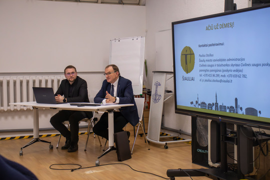 Susitikimo metu Šiaulių miesto savivaldybės Civilinės saugos ir teisėtvarkos skyriaus Civilinės saugos poskyrio vedėjas Paulius Stočkus pristatė, kokius kriterijus atitinkančioms įmonėms privaloma parengti Ekstremaliųjų situacijų valdymo planą, kokias būtinųjų priemonių atsargas įmonės privalo kaupti bei kaip įstatymas įpareigoja organizuoti darbuotojų mokymą ir pratybas.