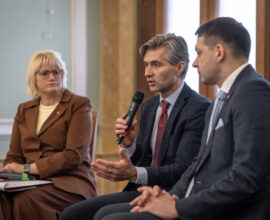 Diskusijoje kalbėta apie pagalbą verslui plečiant veiklą ir ieškant naujų eksporto rinkų, taip pat apie užsienio politikos vaidmenį tarptautinėje prekyboje.
