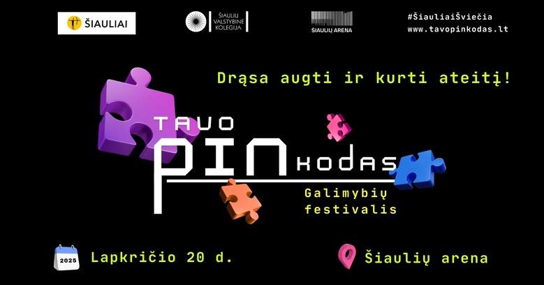 Galimybių festivalis TAVO PIN KODAS“ sugrįžta! Šių metų lapkričio 20 d. Šiaulių prekybos, pramonės ir amatų rūmų narys Šiaulių valstybinė kolegija organizuoja tradicinį renginį jaunimui – „Galimybių festivalį TAVO PIN KODAS“. Šiemetinio renginio šūkis – Drąsa augti ir kurti ateitį! Planuojama, kad renginyje dalyvaus didžioji dalis Šiaulių miesto, regiono 9–12 klasių moksleivių. Pernai renginyje sulaukėme daugiau nei 3000 moksleivių.